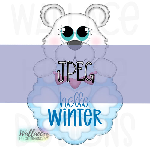 Hello Winter Polar Bear Snowflake Frame JPEG