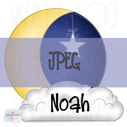Cloudy Night Moon and Star JPEG