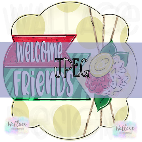Welcome Friends Watermelon Floral Frame JPEG