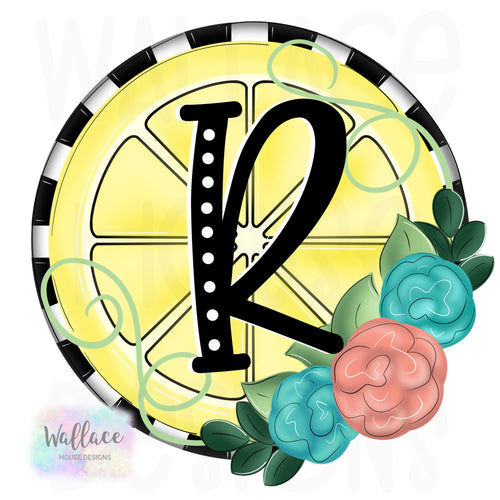 Floral Lemon Slice Round Monogram Printable Template